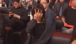 芭姐刚好看直播扫到papi酱这个画面,台下的她这次不走视频里的霸气风,而是娇羞到尴尬症快犯啦,像个马上要上台表演的小女孩一样。