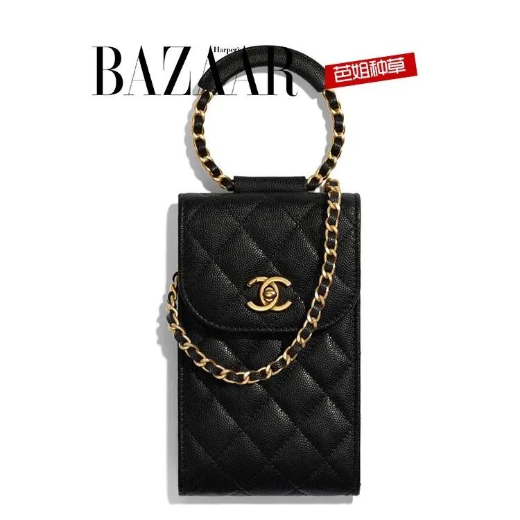 而香奈儿的手机包,除了能作为单品搭配,还能装下一根补妆的口红,适合轻装简行的你。
