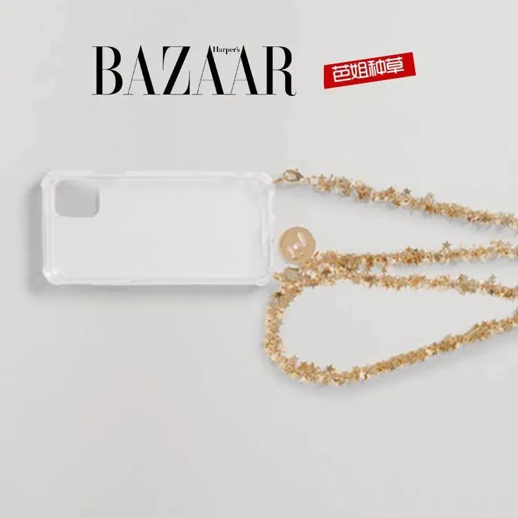 这款用透明有机玻璃打造的手机壳,还用簇簇“繁星”串联成了手机链,阳光一照,闪闪惹人爱。