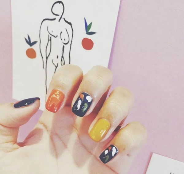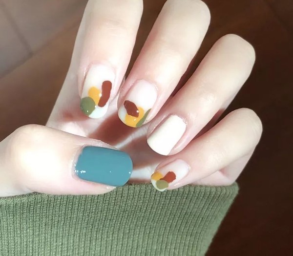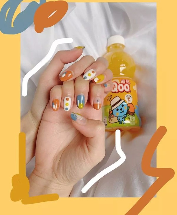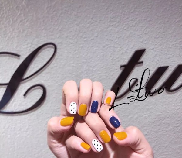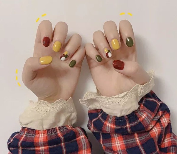 还可以和红色绿色做个撞色设计,活泼又特别,很适合短指甲的同学。