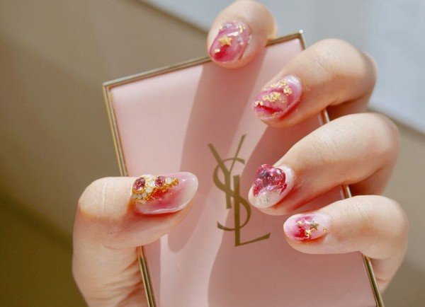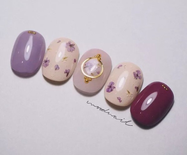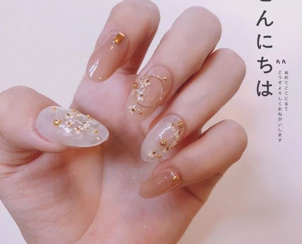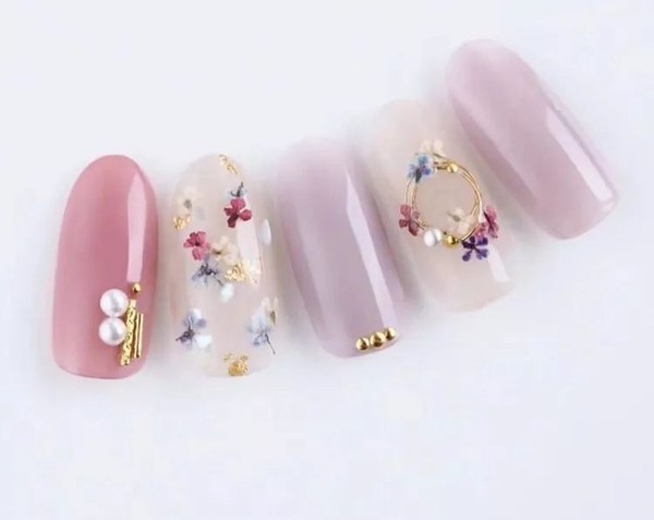 唯美烂漫的干花美甲在日本非常流行,通过压花工艺,让花朵重新绽放在指尖。