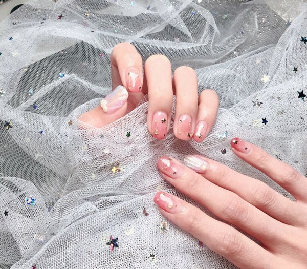粉色渐变的星月款式依旧是小仙女们的爱,甜美的水蜜桃粉色被均匀晕染在甲面上,不但给你带来好气色还可以提升桃花哦!