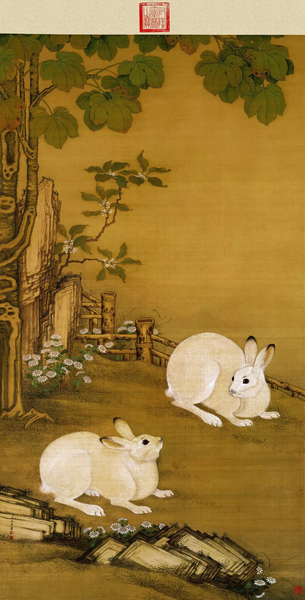 相传,康熙年间,中秋节将至,康熙清点宫藏画作,竟无一幅玉兔之作,于是下旨让冷枚绘制这幅绝无仅有的《梧桐双兔图》。作品完成后,康熙赞“兔为明月之灵、世间能绘玉兔祥瑞、灵气者唯冷枚也。”后人称其:天下第一吉祥双兔。
