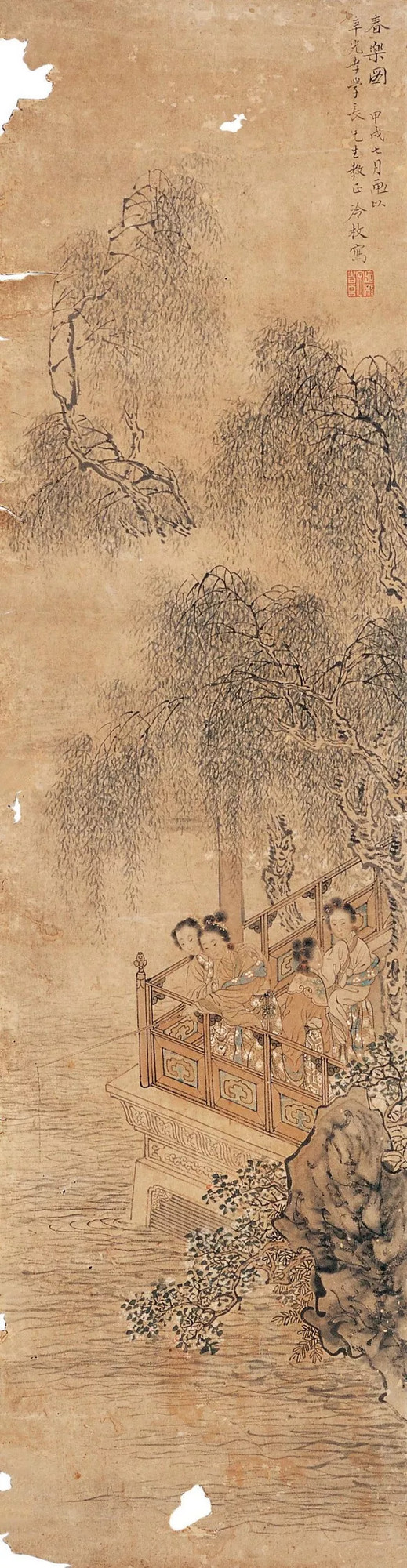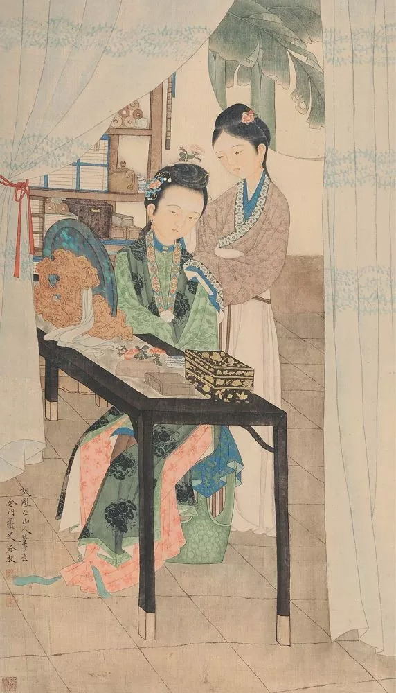 “深窗美人忆年华,浪说文姬识断弦。何似风前贞女引,低昂一曲使人怜。”除单纯的技法表现,冷枚还曾多次以诗句的形式描述其画中女子,文字与画作相辅相成,共同谱写了一曲曲绝妙篇章。