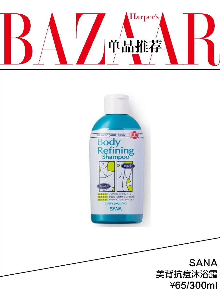 SANA 美背抗痘沐浴露也非常有名,气味很清新,成分里的水杨酸负责疏通毛孔,叶绿素可以有效的杀菌,还有能舒缓皮脂分泌的芦荟和洋甘菊。