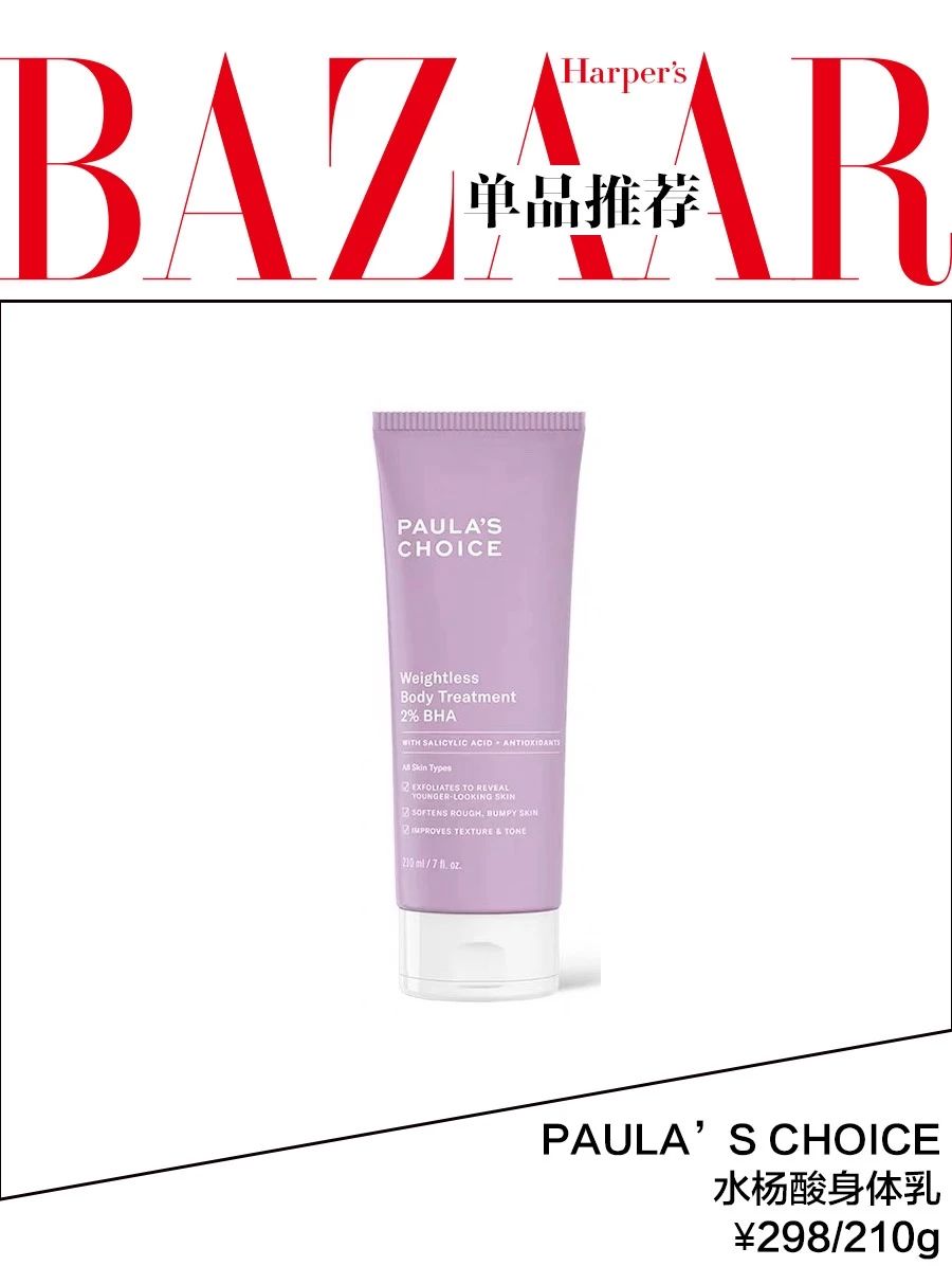 芭姐推荐:PAULA'S CHOICE 水杨酸身体乳不仅能祛痘,还能祛除鸡皮肤,不过因为水杨酸的关系,擦在身上会有轻微的黏腻感。