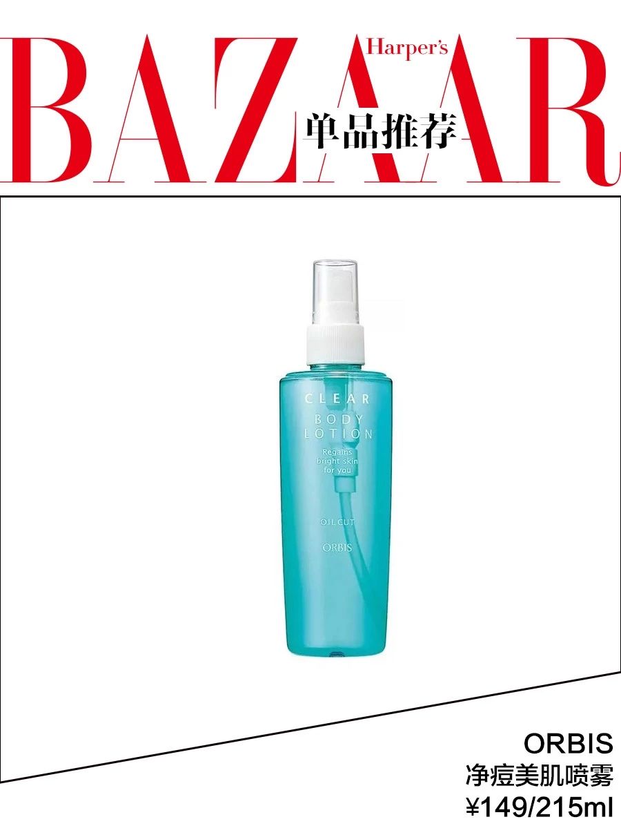 ORBIS 净痘美肌喷雾里加入了植物汉方精华,不仅能消灭背部和胸口的痘痘,还能预防粉刺,淡化痘印,使肌肤恢复平滑细致。