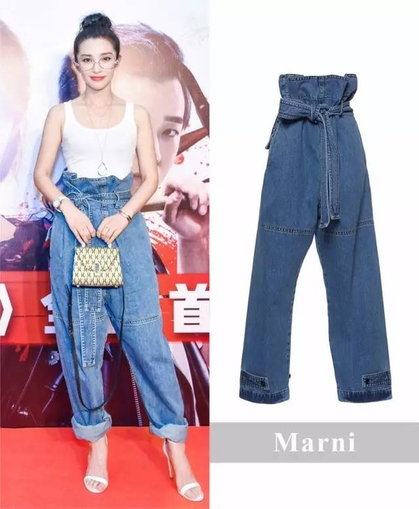 这样的好身材除了冰冰姐严格的身材管理之外,这条来自Marni的纸袋裤也是功不可没