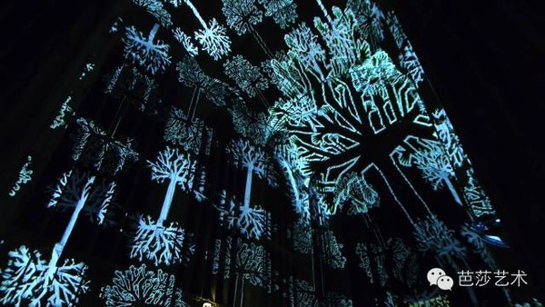 这个作品来自于法国新媒体艺术家Miguel Chevalier,他擅长以光影建构虚拟世界,探讨虚实之间的趣味和反思。小编前段时间介绍过他的另一个作品:影像 | 巴黎大皇宫上的世界起源