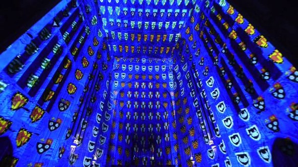 Miguel让各个学院的院徽在教堂穹顶闪动