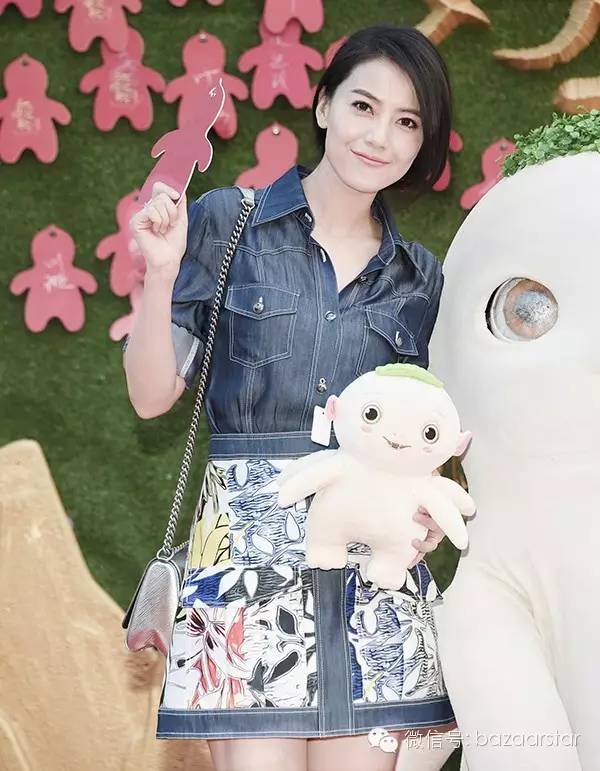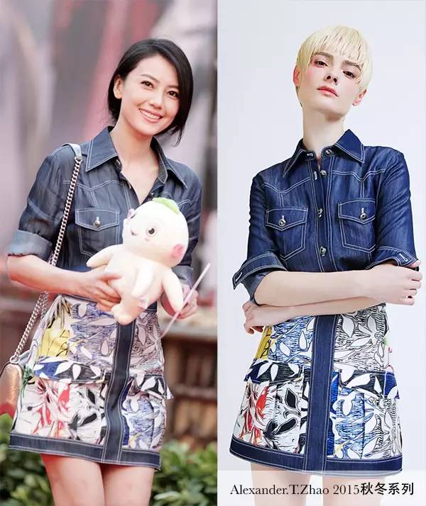 高圆圆的牛仔印花连衣裙来自alexander.T.Zhao 2015秋冬系列