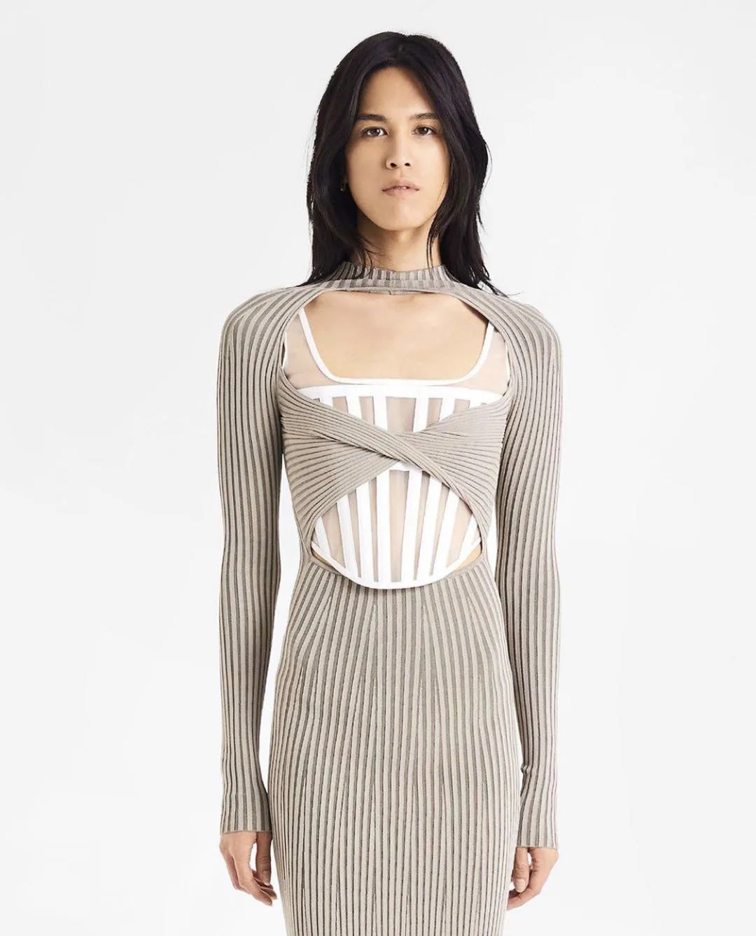 今年发布的这款针织裙,利落干净的针织纹理,加以建筑式美学恰到好处的细节处理,还有无可挑剔的剪裁功力,无可言喻的高级感实在是体现得分毫不差。