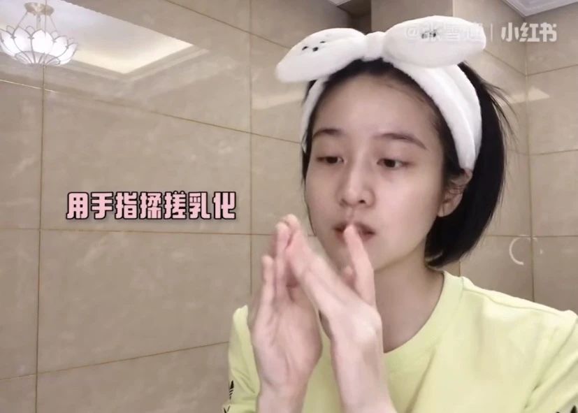 而另一边,张雪迎在最新的护肤步骤分享视频里也是极其注重眼部的护理,先用两只手的无名指和中指轻轻揉搓将眼霜加热,然后将眼霜轻点在眼部下方;