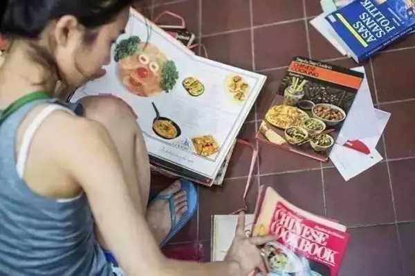 大学开始,她习惯每周学两道新菜,打工的钱几乎全来买厨具,好友回国她也只求代购 “烹饪书”。