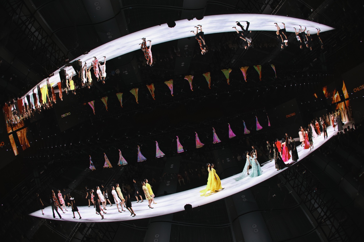 此次CHLOSIO克劳西大秀持续半个小时,秀场呈现出现代时尚和东方韵味交融的气氛,给现场嘉宾带来丰富的视觉体验。