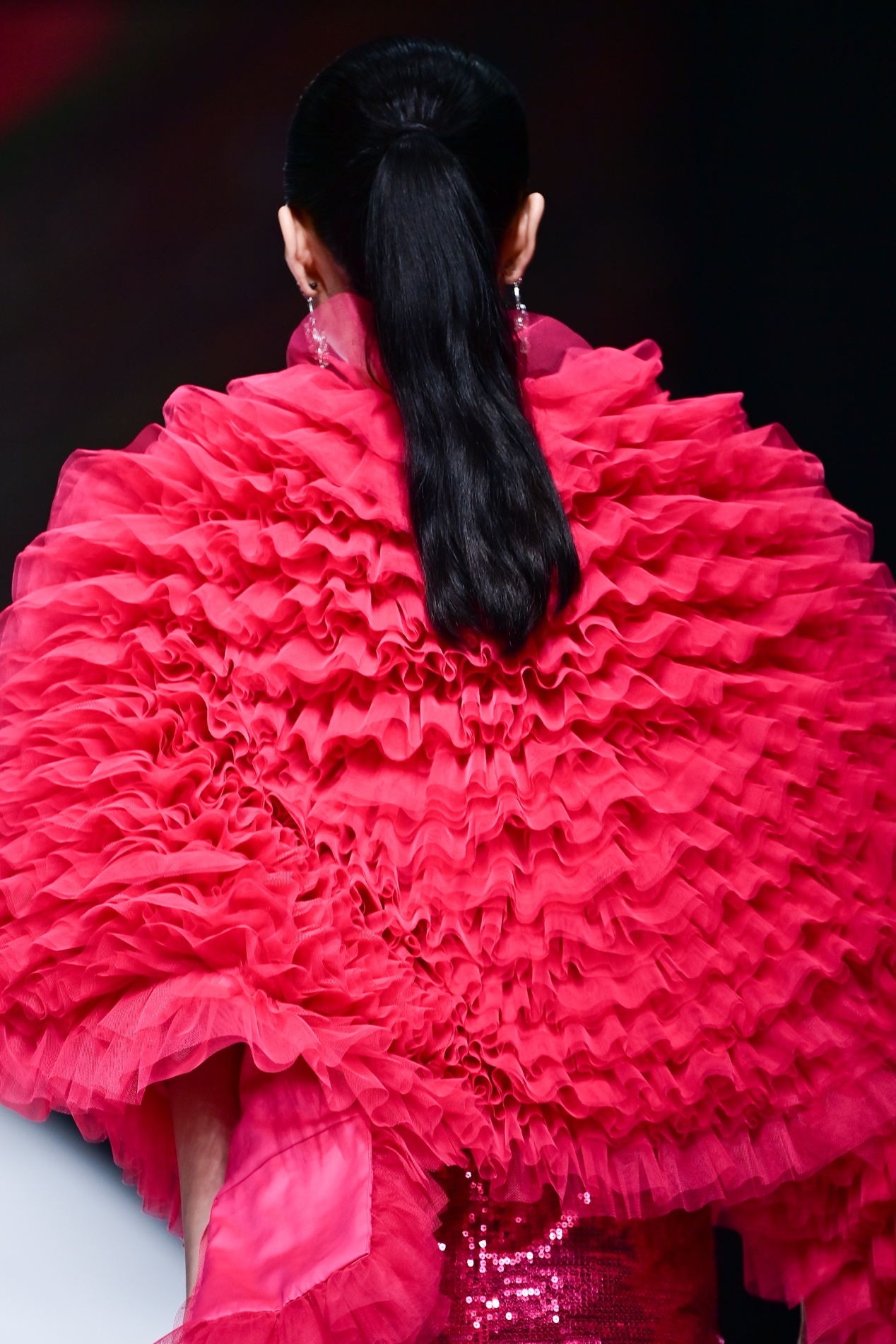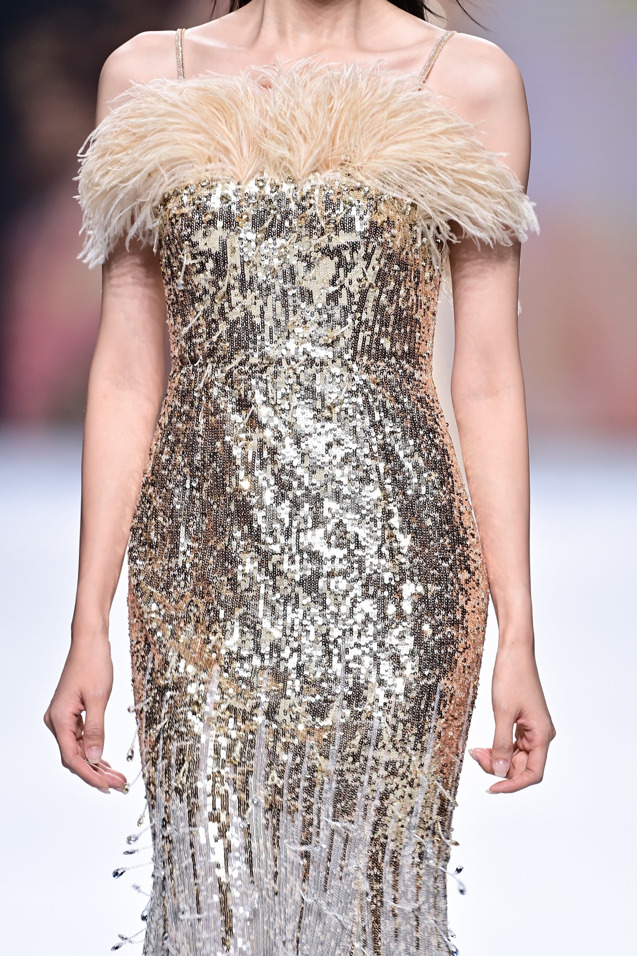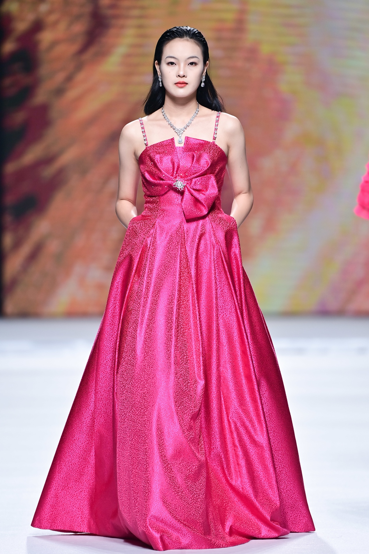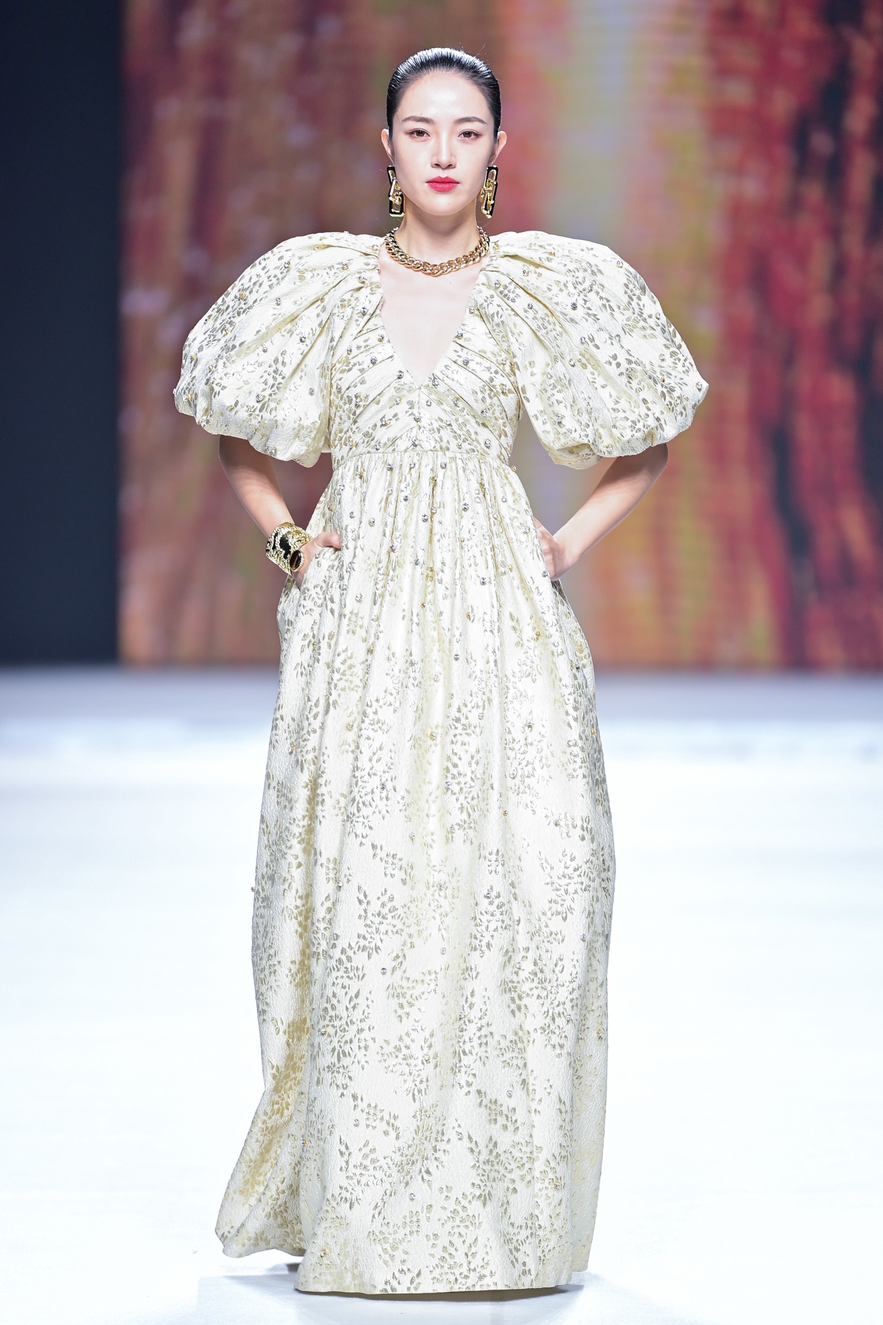 本次秀场分为3个系列主题,包含纯手工礼服系列作品、自然元素作品和中华·情系列作品。纯手工礼服系列作品不仅在手工工艺上实现了极致的表达,更在艺术风格上有着精确的定位,传达出品牌的奢华高雅追求,在作品中彰显精致与优雅。
