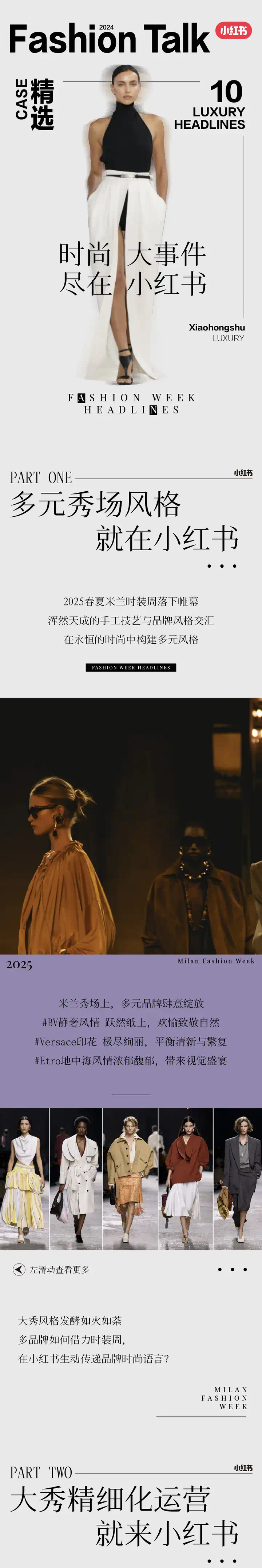 秋色蔓延又见意式风光,米兰时装周以历史浓厚的古典美学相拥现代艺术因子,游走于传统与创新之间,指引来年春夏之风的方向。本次国际时装周期间,小红书再次以卓越之姿亮相国际舞台《数智之路|小红书亮相米兰,激发生活方式营销新思考》,携手众多头部奢侈品牌共襄时尚奢华盛宴,赋魅大秀璀璨、共寻营销增长新机。
