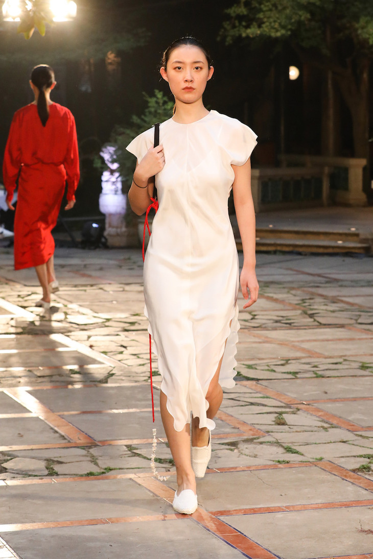 从剪裁、设计到原料采购,本季的每个细节都倾注着设计师的巧思匠心。风格上,品牌延续了致敬七十至八十年代风格的设计传统,将复古男士西装的剪裁运用到女装设计中来。以民国时期旗袍打底裙为灵感的月牙边连衣裙搭配轻薄的真丝面料,凸显东方女性的柔和气质。创新的Lady Dress将大面积提花面料与钟型袖设计结合,为系列增添一抹亮色。延续品牌经典的Led Jacket以富有质感的的棉麻混纺帆布搭配中式盘扣设计师,再次呈现到系列当中。丰富的单品品类满足当代女性不同场合的着装需求。