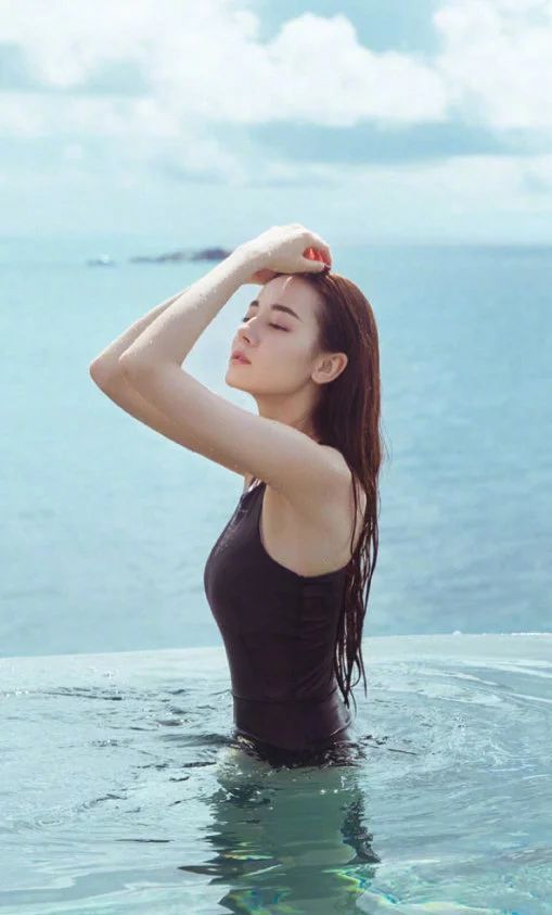 刚过完生日的热巴也晒了在无边泳池的泳装照,简单活力的运动款最考验身材。