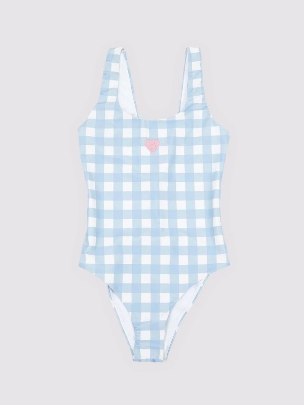 格纹蕾丝泳装