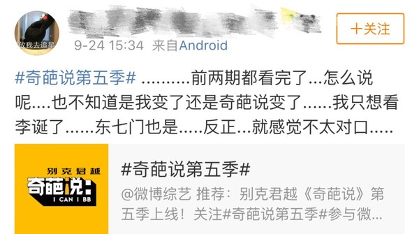 很多网友纷纷对着新一季节目伤春怀秋,在微博上写小作文儿怀念心中的“白月光”——第一二三四季《奇葩说》