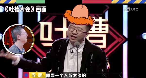 而节目录制现场同样也是因为李诞笑的人仰马翻。作为《奇葩说》的第一大黑粉,李诞之前在《吐槽大会》吐槽《奇葩说》的历史资料,全被节目组在现场给一一翻了出来