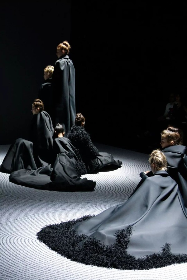2013年秋冬高级成衣系列“Zen Garden”谢幕时模拟日式庭院