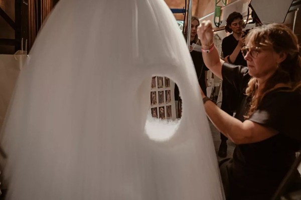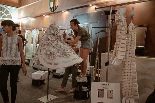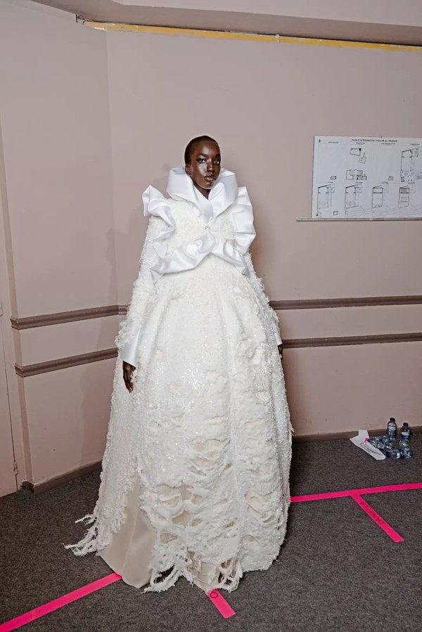 在发布会开始前,我们有幸来到了Viktor & Rolf 的后台。不像一些品牌那般人声鼎沸,记者、明星、友人、模特和摄影师乱作一团,在他们的后台里,大家按部就班地完成自己的工作,不慌不忙。