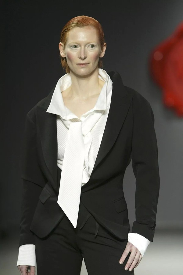 2003年秋冬高级成衣系列“One Woman Show”,以男士西装为灵感,重塑女性力量,Tilda Swinton也参与了走秀