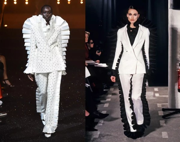 灯光亮起,25位模特缓缓登上剧院的舞台,25年间的经典创作从眼前闪过。让我们再一同回顾系列中的每一套裙装并与其对应的经典系列,探寻两位设计师设计中的艺术与幽默。