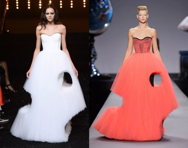 2010年春夏高级成衣系列“Cutting Edge Couture”,在体积感裙装切割出破洞,制造被侵蚀的视觉效果