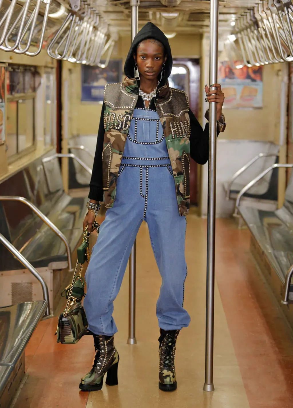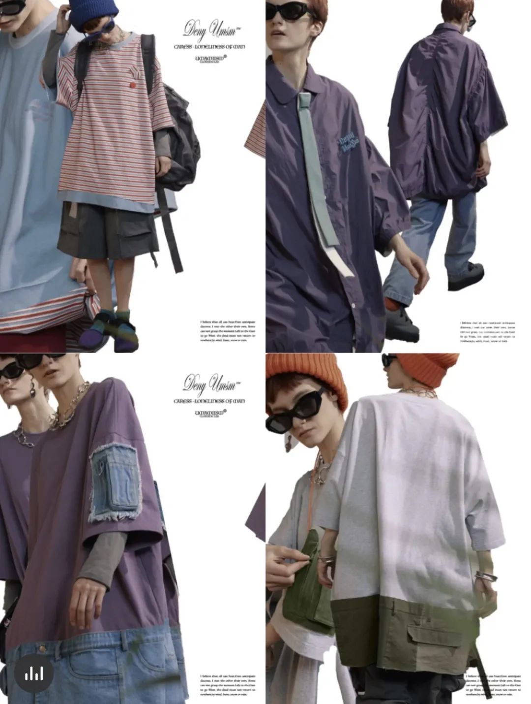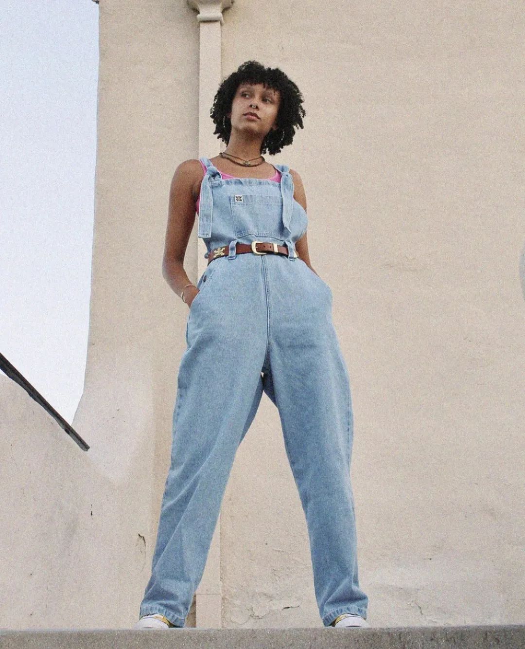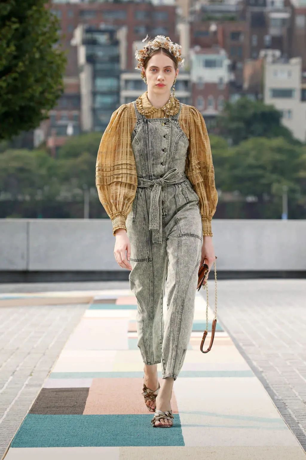 打破常规局限,一切回归原始前面说到工装背带裤再次复古回潮重塑本源,作为经典款式的牛仔背带裤更是在面料和廓形上有别于之前,不再追求面料的精致感和收腰显瘦的板型设计,一切都从背带裤最开始诞生的功能性出发。