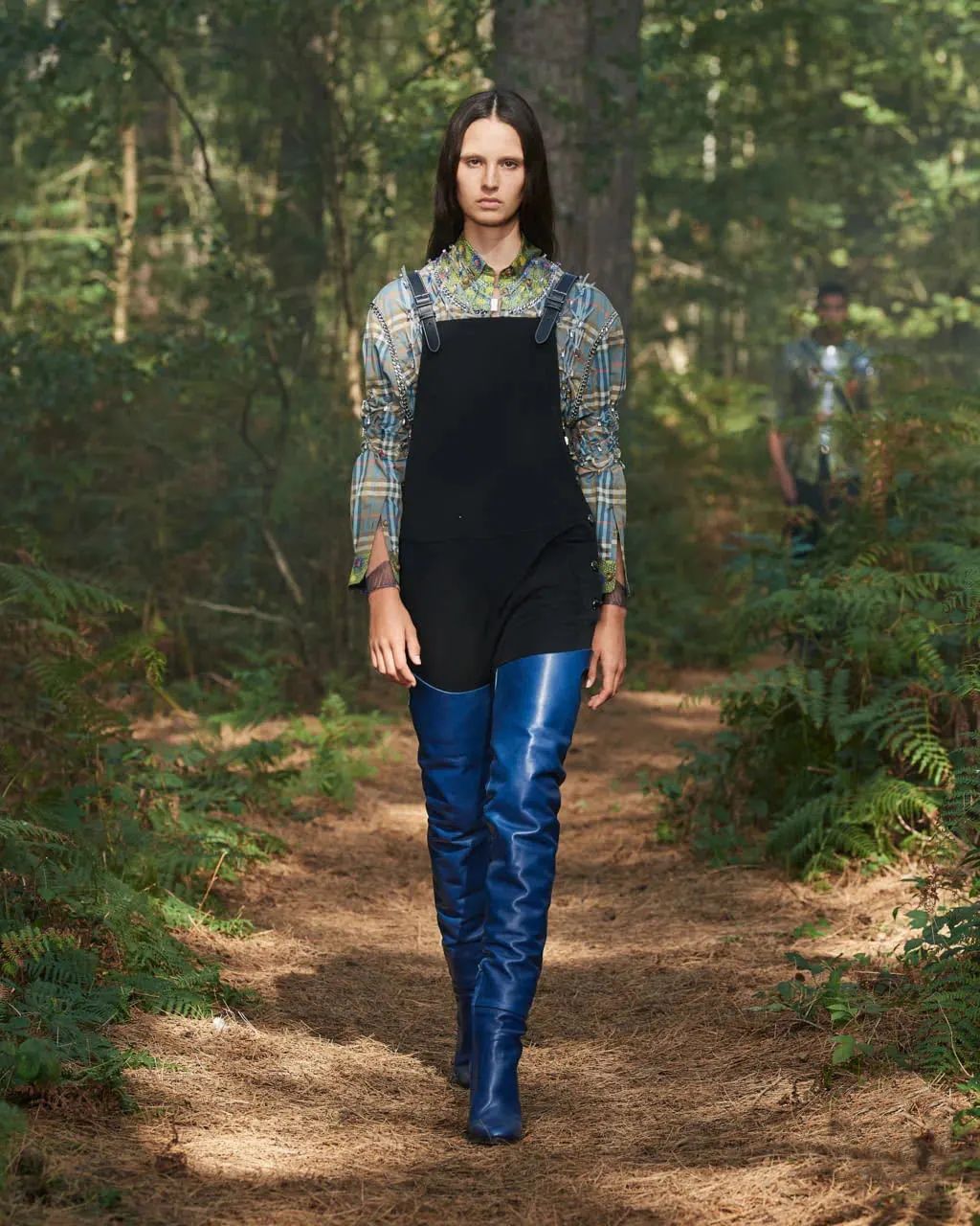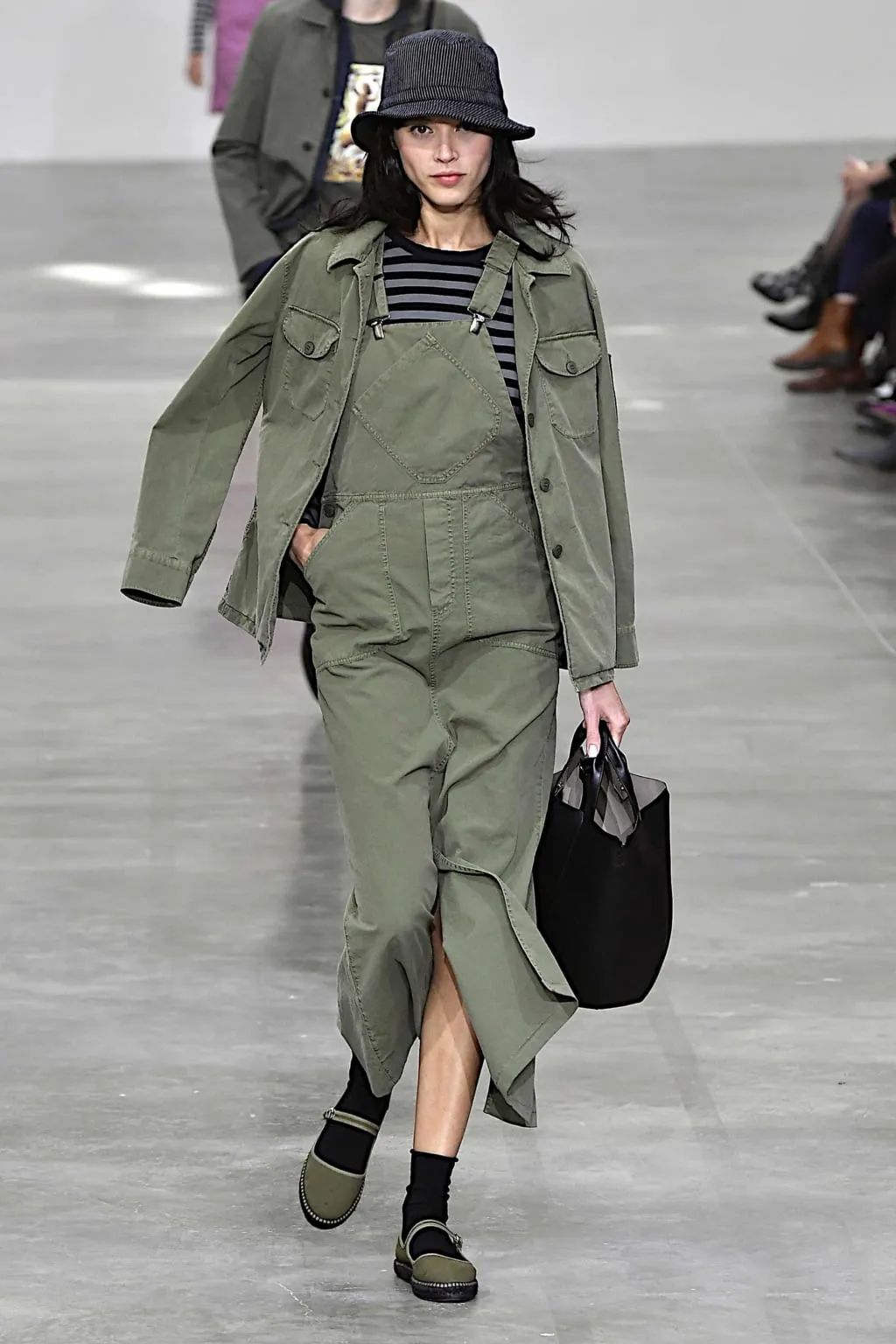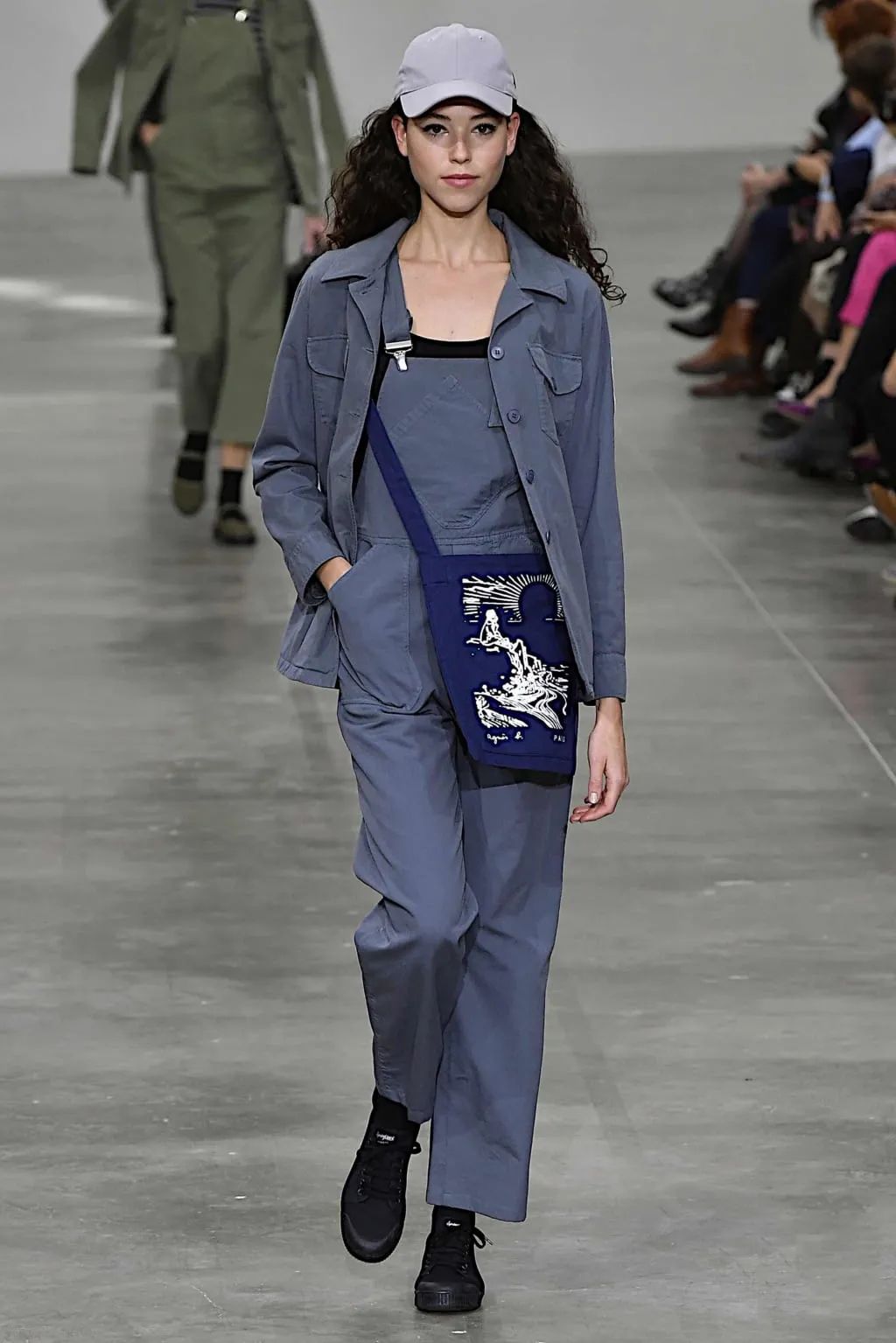 而且和去年追求突出身材比例线条的窄版廓形不同的是,今年背带裤廓形上的设计更趋向于去性别化的宽松板型,就像回到了背带裤设计的初衷,一切都是为了工作起来四肢活动能更加轻松和自如。