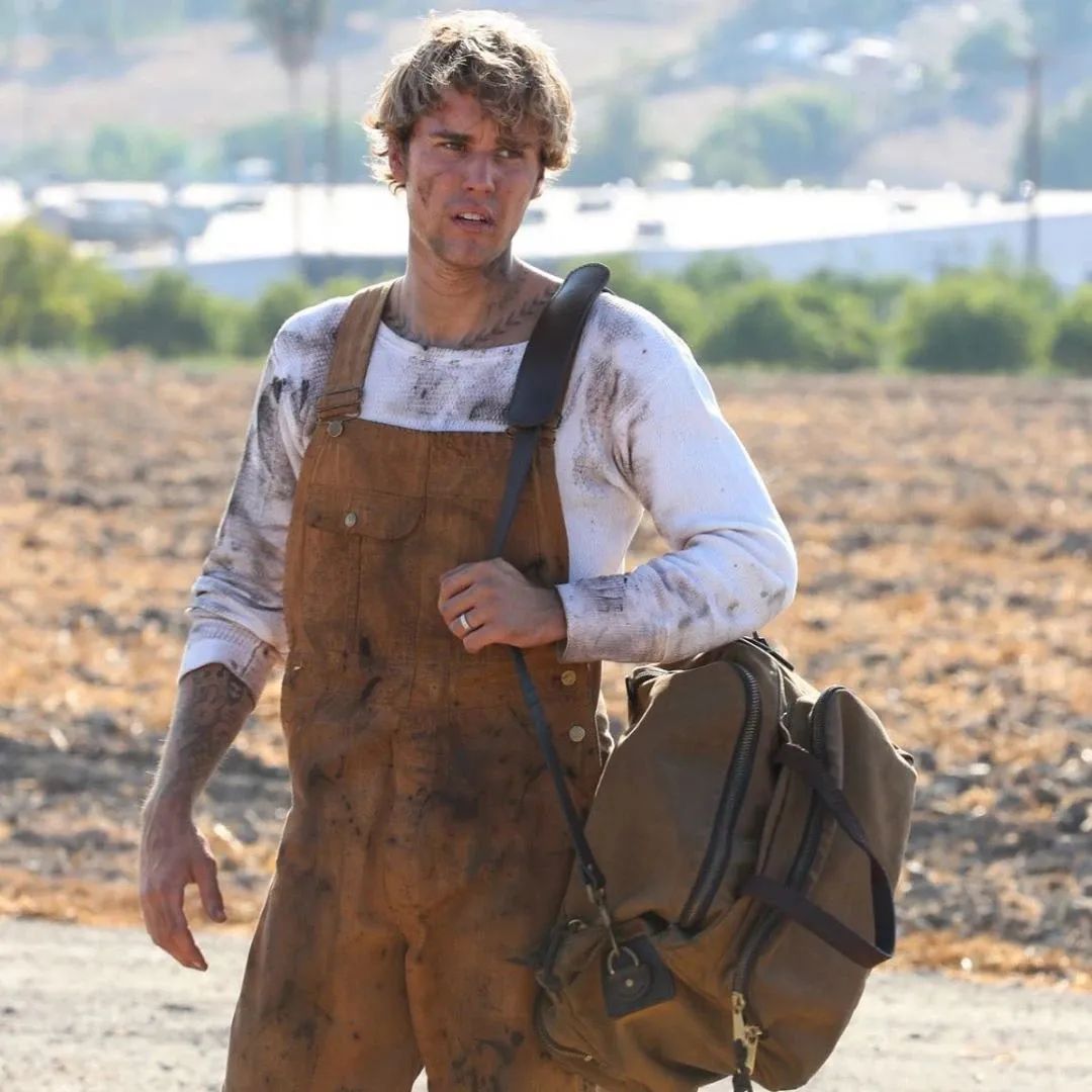 Justin Bieber在这次新专辑主打的《Holy》中,更是为了配合故事情节穿上了一件卡其色背带裤,索性充当了一回充满阳刚男性气息的建筑工人。