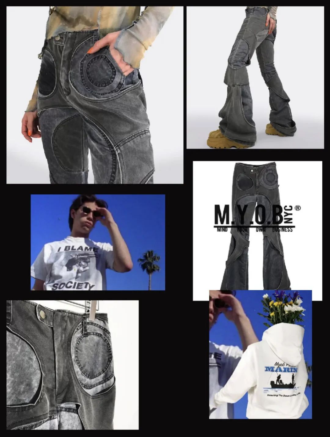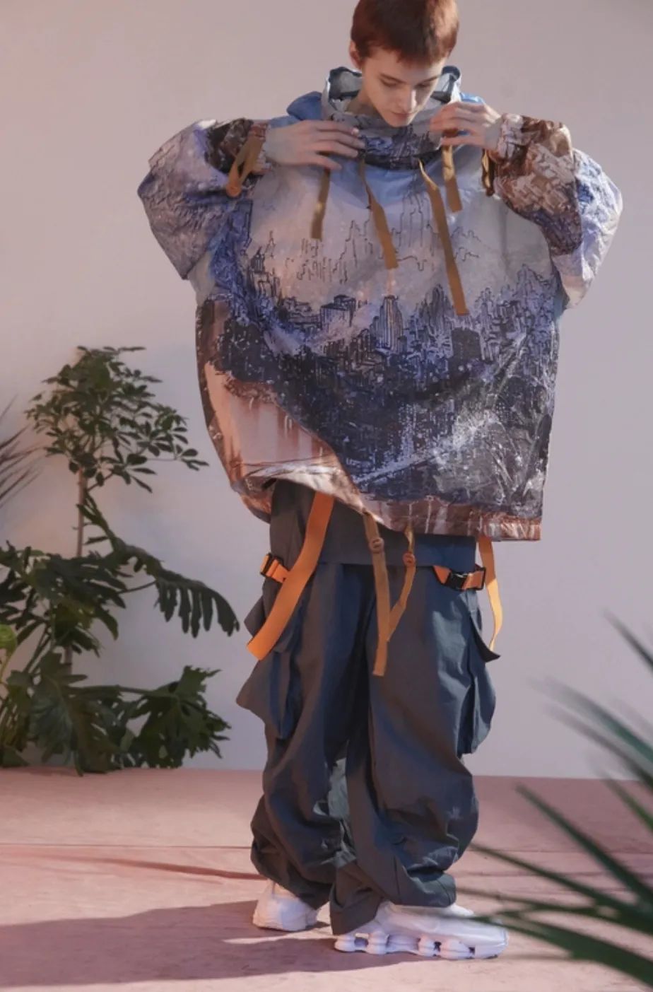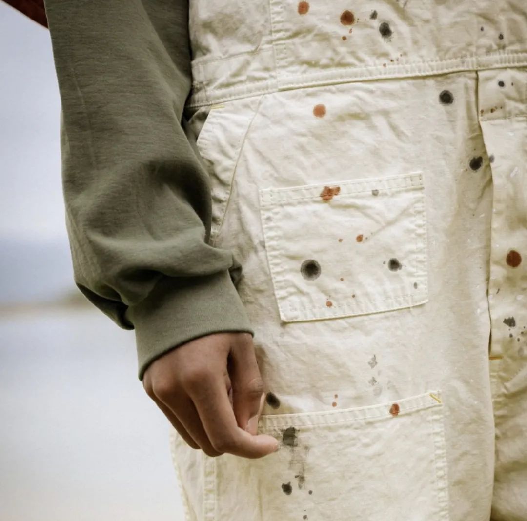 Madness的这款设计更是特别,不仅摆脱了一贯以牛仔和深色为主的常规概念,还在面料上结合了重造旧布料,又加上了带有层次感的泼墨效果用以点缀,实在是细节满满,复古感十足。