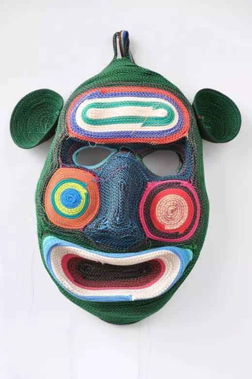 然后,他用缝纫机三下五除二、制作一个新面具出来鼓励自己。结果一发不可收拾,他在丑面具的道路上越走越远。