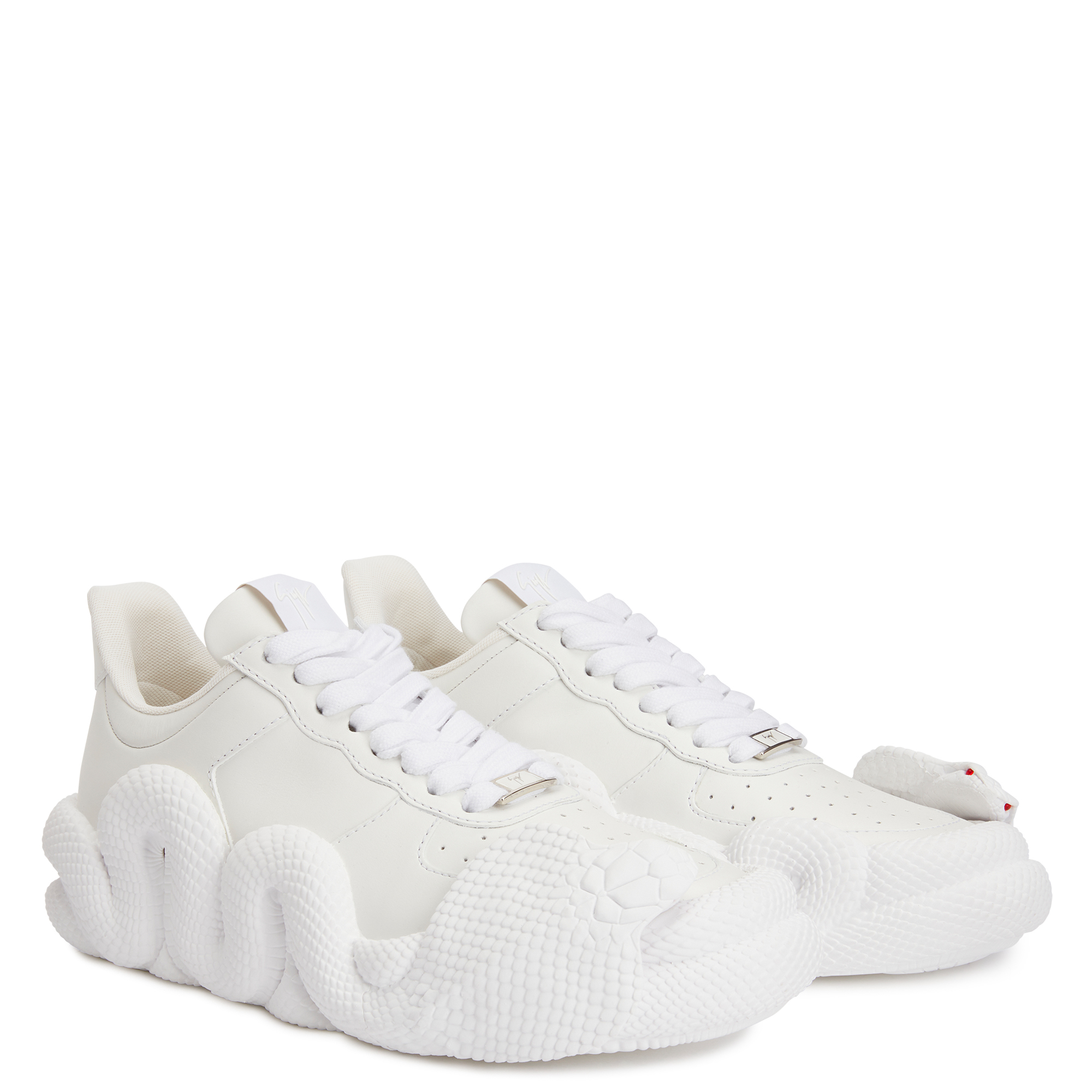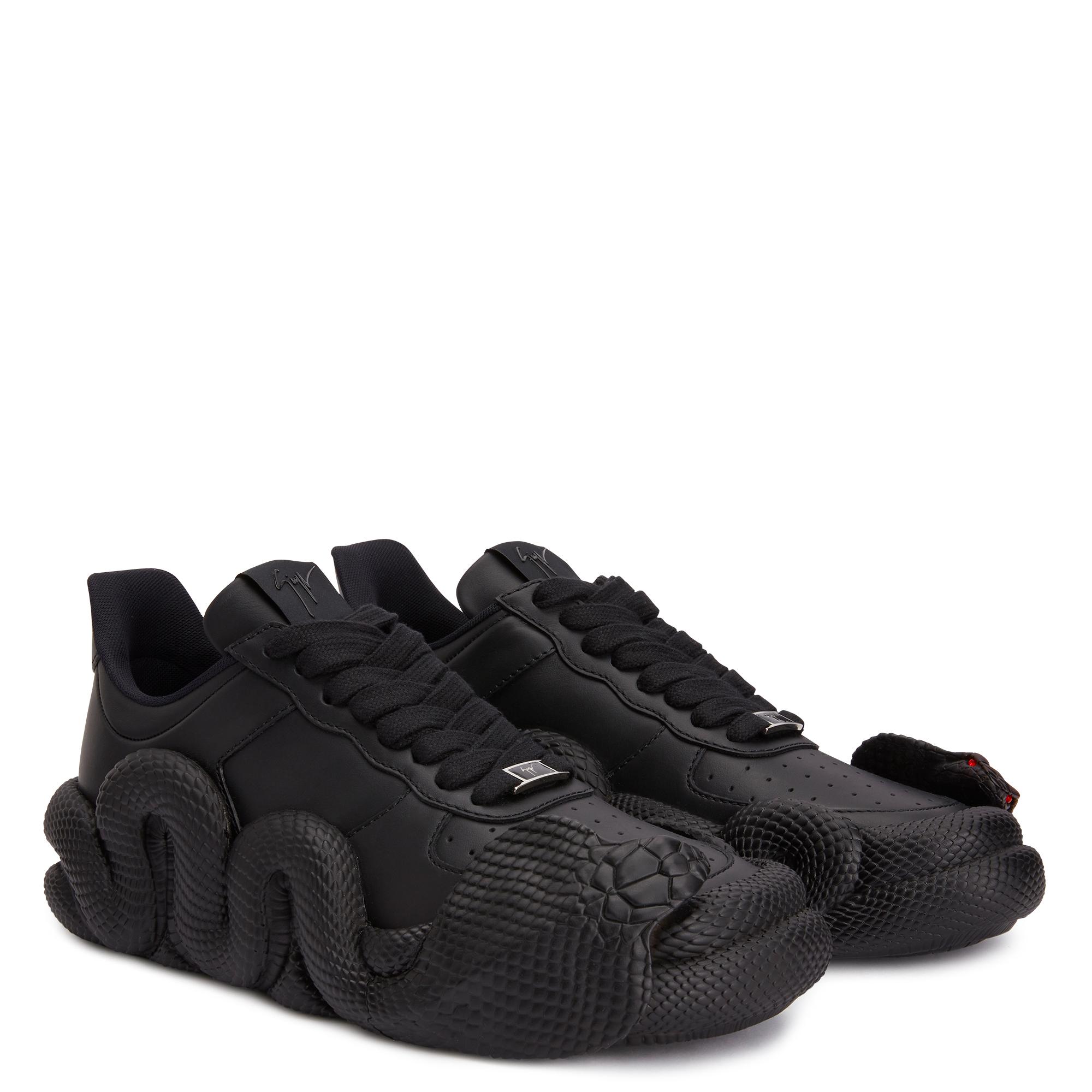 一直以来象征权力和变革的蛇形,经常被运用于Giuseppe Zanotti 的礼服鞋设计,此次品牌第一次大胆地将其活灵活现的呈现于运动鞋上。