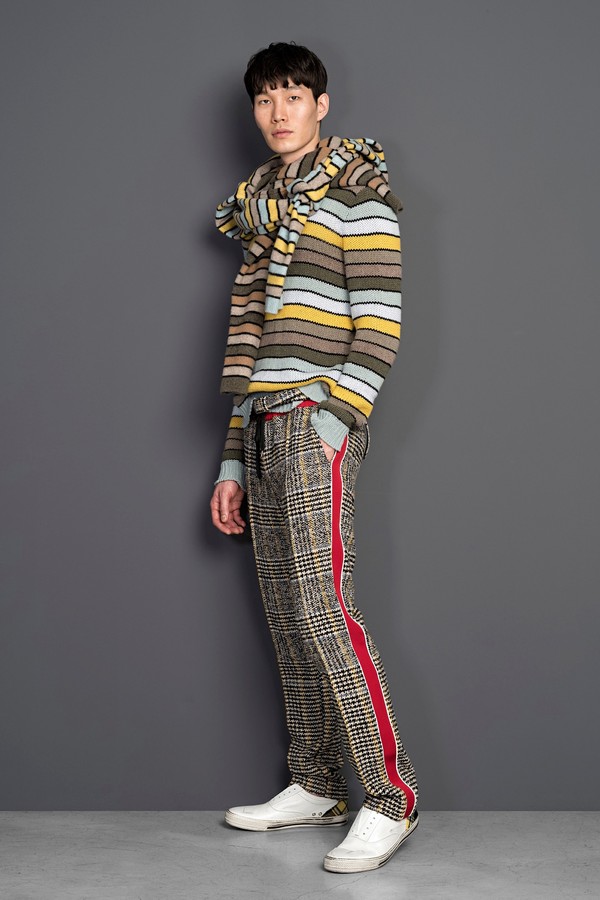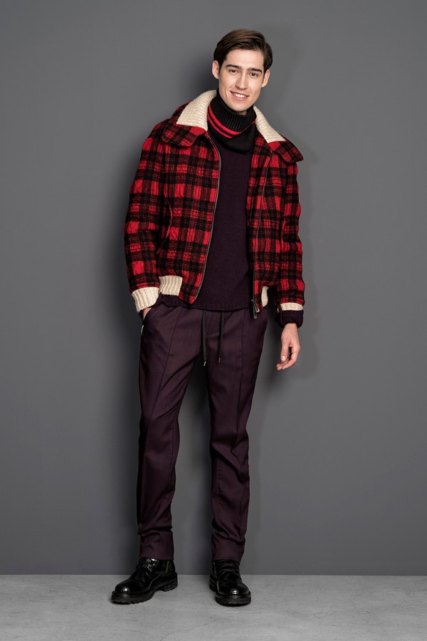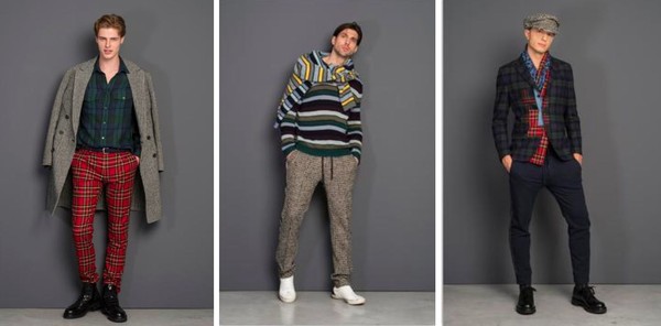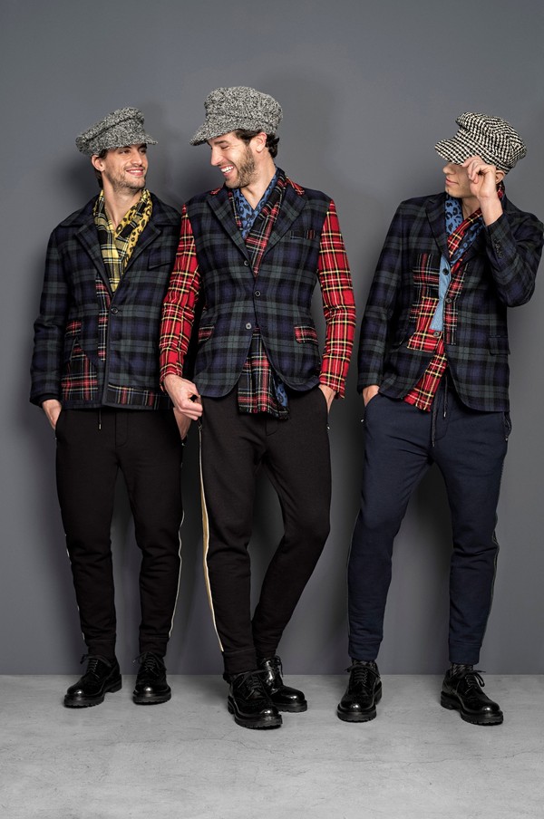 色彩丰富的苏格兰格子呢和动物花纹的对比,令羊毛棉衬衫分外显眼。 印有千鸟格或人字形图案的夹克和大衣被予以重新改造和修饰,嵌入了羊毛内里。 近年来非常流行的威尔士王子运动双条纹设计在新一季系列中也通过织物技术被巧妙 地嵌于休闲裤两侧,更添一份时尚动感。 新季毛衣方面,明亮色彩感的横向条纹和窄型黑色镶边互相呼应。 全新的“做旧“式的丹宁牛仔被注入了充满细节感的苏格兰格子呢拼接质感。关于本季系 列中的必备款式,还包括三款不同的苏格兰格子呢印花款式的定制化夹克衫,完美契 合本季的核心主调。
