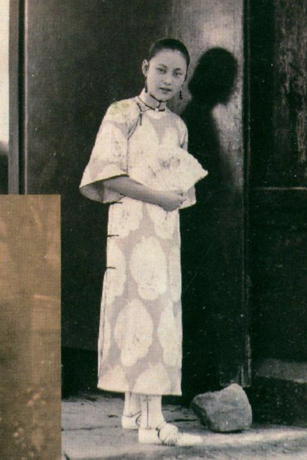 倒大袖旗袍是民国很新潮的款式,区别于改良清朝服饰的传统旗袍,张爱玲曾在《更衣记》中形容这种款式的旗袍为“喇叭管袖子,飘飘欲仙”。