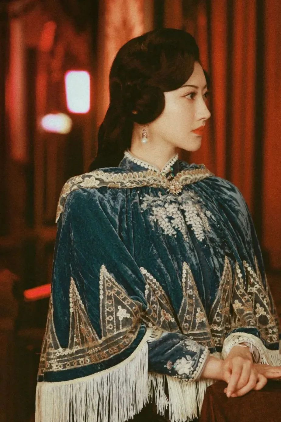 身为女主的司藤穿着珍珠刺绣云肩与素雅的真丝旗袍,富贵藤的气质被稳稳拿捏,仔细看,领口处还镶嵌有宝石设计。