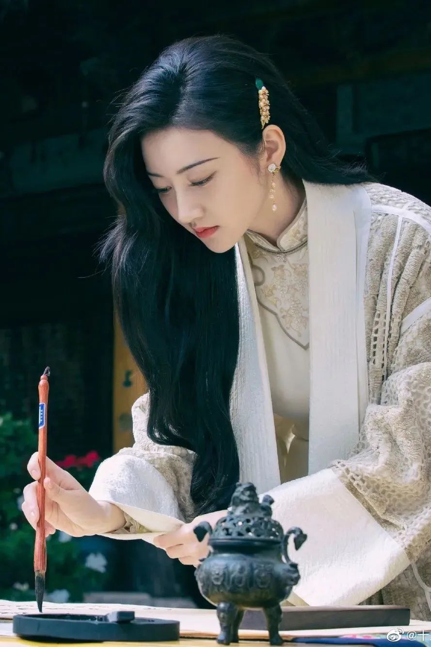 精细的花纹缝制让人眼前一亮,古香古色的气息扑面而来,司藤好似不施粉黛的闺中小姐正在院中煎茶、练字,和宁静的住宿小院融为一体,仙味十足。