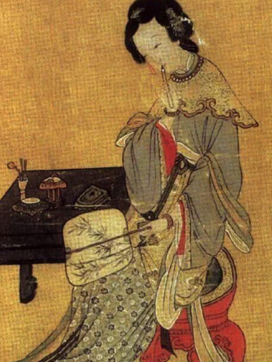 司藤穿的黑色绣花斗篷上绣着金线与花朵,斗篷是古代的保暖装扮,类似披风的款式在过去非常受女子欢迎,明朝的唐寅所著的《探梅图》中就曾写道:“梅花烂漫小轩前,鹤氅来看雪齐天。”