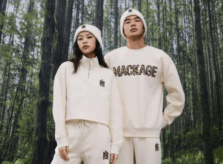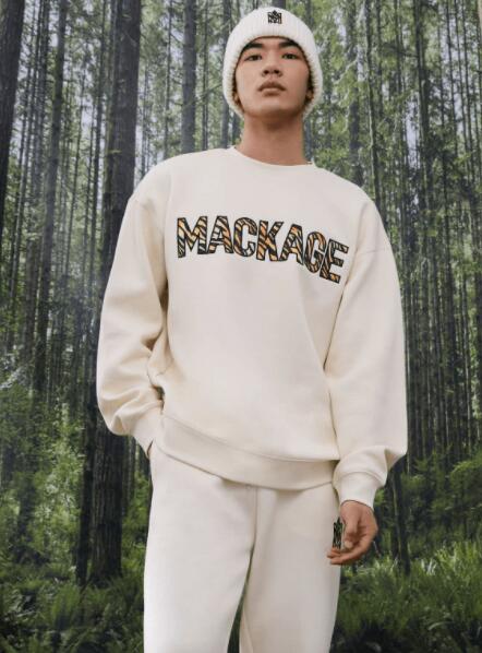 全系列风格以休闲舒适为主,是男女皆可穿着的中性风格。设计师将奶油白的卫衣作为画布,将 MACKAGE 刺绣融入虎纹印花元素,奇趣印花打造专属标识设计,精致巧思带来全年皆可穿的时髦单品。