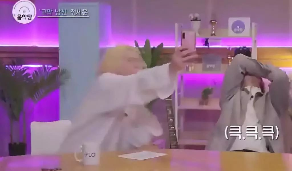 不仅如此,金希澈还cos了追星女孩希望同偶像合照的样子,让在场的郑世云笑到“怀疑人生”