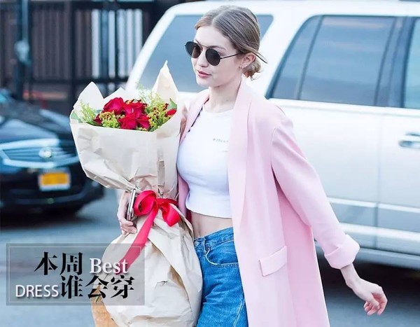 芭姐常说easy chic,其实就是看起来没有过多“手段”的搭配。长度在臀部的外套其实对于小个子女生来说并不好把握,露腿只是第一步。像幂幂这样内搭露脐装提高腰线才是关键,多条带子营造几何感,就能顺利勾住大家的眼球。