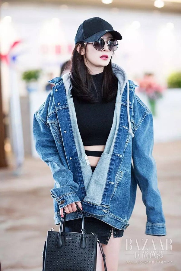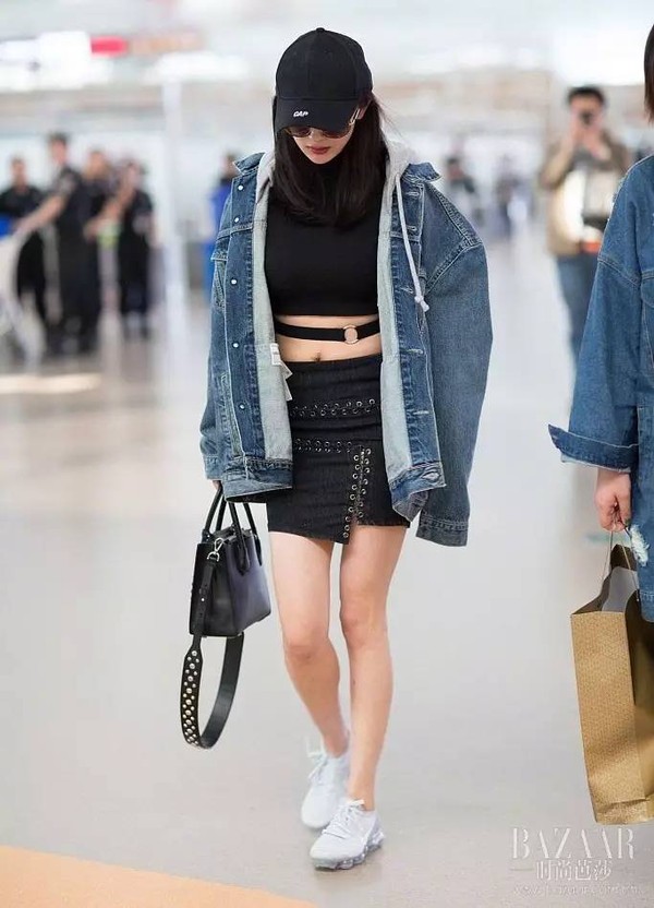 女星都是飞行超人,所以在机场“捉星”太容易了。大幂幂4月27日现身江苏南京机场,oversize牛仔外套搭配露脐套裙,极具几何感的hip-hop风拿捏得相当到位。