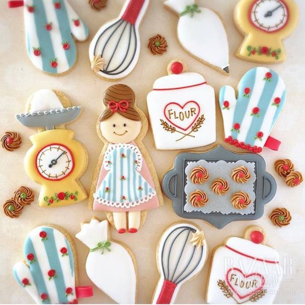 这个以“做甜点”为主题的曲奇绝对是爱好动手的妹子们的最爱。想象中自己穿围裙的样子再加上需要的工具:面粉,称,打蛋器,奶油等,连手套都有,好像全都买回去!
