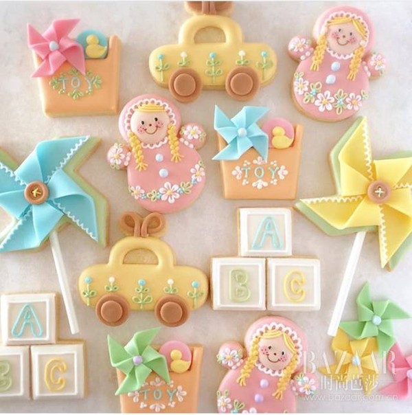 这个“玩具”主题的曲奇小朋友们肯定喜欢!不仅有娃娃,玩具车,风车等,还有帮助小孩学习字母的玩具,同时俘获了妈妈们的心,博主真的太细心了~