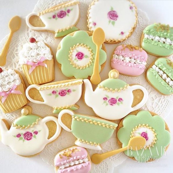 你见过曲奇做的马卡龙和被子蛋糕嘛?统统在“下午茶”主题曲奇里!还有茶壶,茶杯,杯垫,茶匙等,只有你想不到,没有博主做不到的!