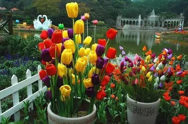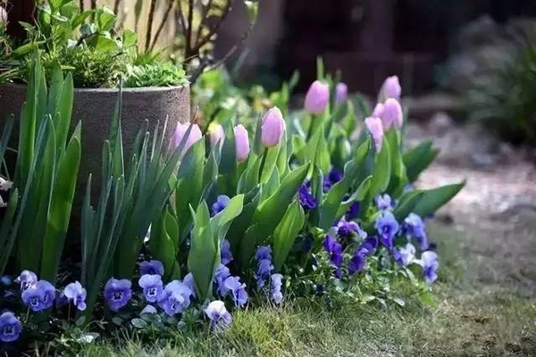 家里有个小院子的话,将郁金香和三色堇混合种植,错落有致的花开景象美得不要不要的~